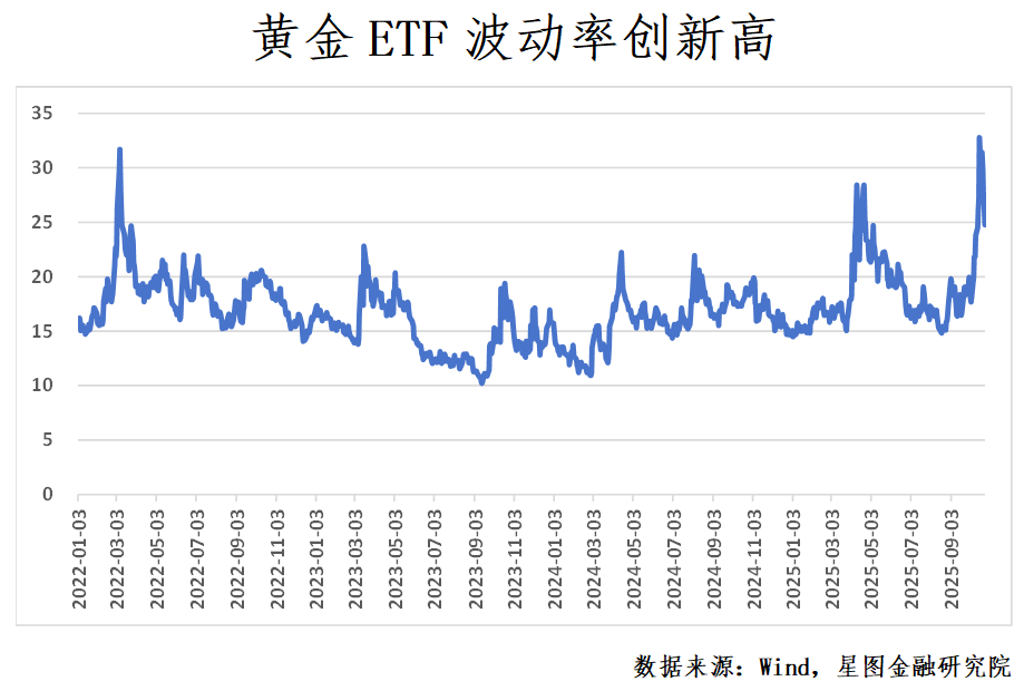 第二,黄金ETF波动率放大反映情绪高度敏感。黄金期权价格与隐含波动率密切相关。当隐含波动率骤然上升,意味着期权价格正在被推高,投资者被迫支付更高溢价来购买期权,对冲潜在的价格波动风险,而这正是市场情绪脆弱的典型表现。若此类信号出现在趋势加速阶段,往往预示行情可能出现转折。