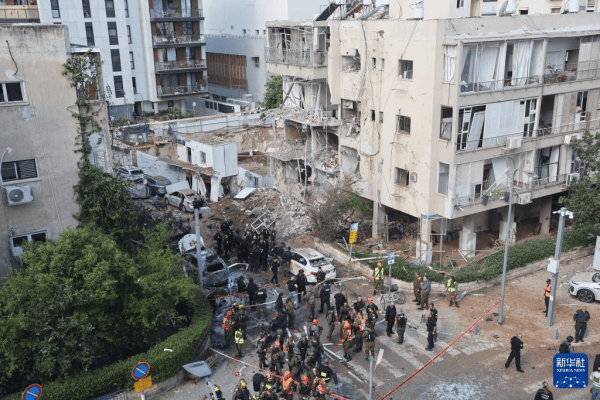 3月24日,在以色列中部城市特拉维夫,应急人员在导弹袭击现场处置。图源:新华社