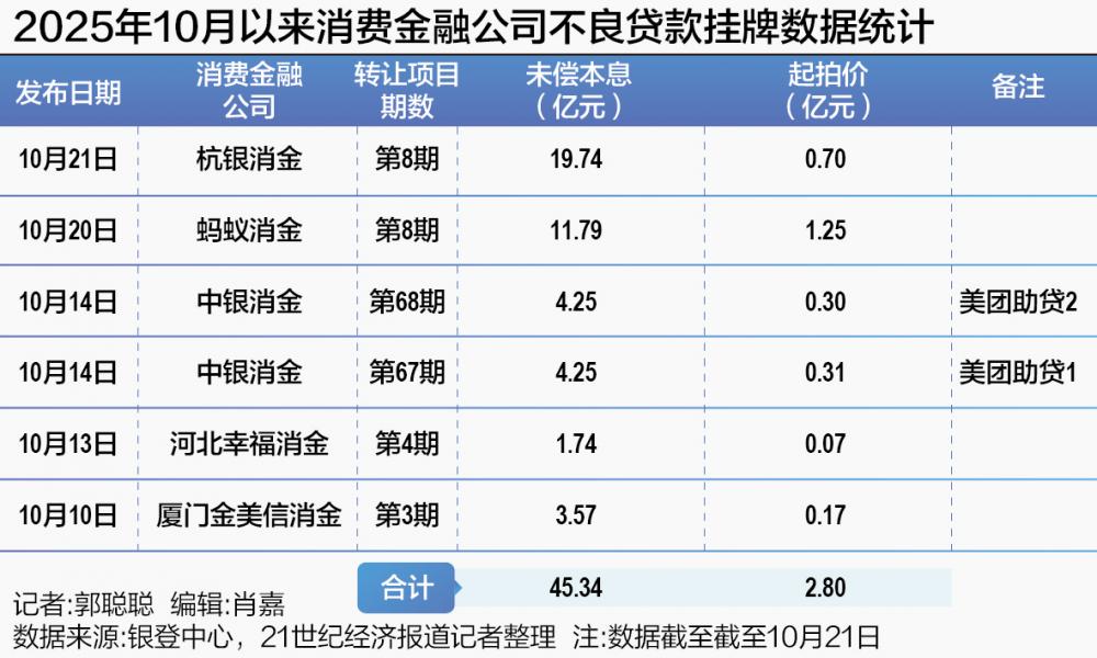 2025-10-22金年会,金年会体育,金年会体育app,金年会体育官方网站,金年会注册,金年会最新入口,金年会APP21世纪经济报道记者注意到,杭银消金、蚂蚁消金两家行业头部机构接连挂出累计超31亿元的个贷不良资产包,这显示出消费金融机构优化资产结构的迫切需求。
